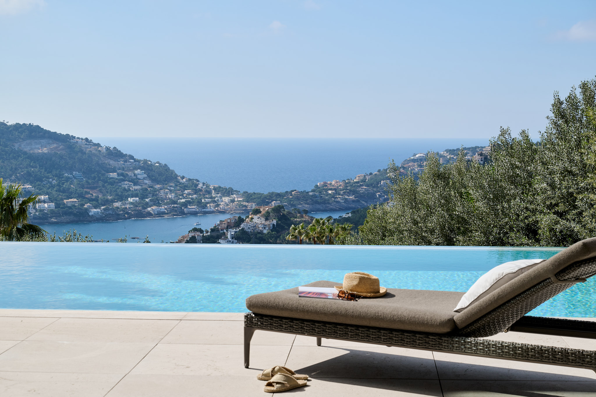 Von allen Wohn- und Schlafbereichen genießen Sie freien Meerblick, während die exponierte Lage selbst im Sommer für eine natürliche Frischluftzirkulation sorgt. Perfekt für elegante Sundowner mit Blick bis Ibiza.