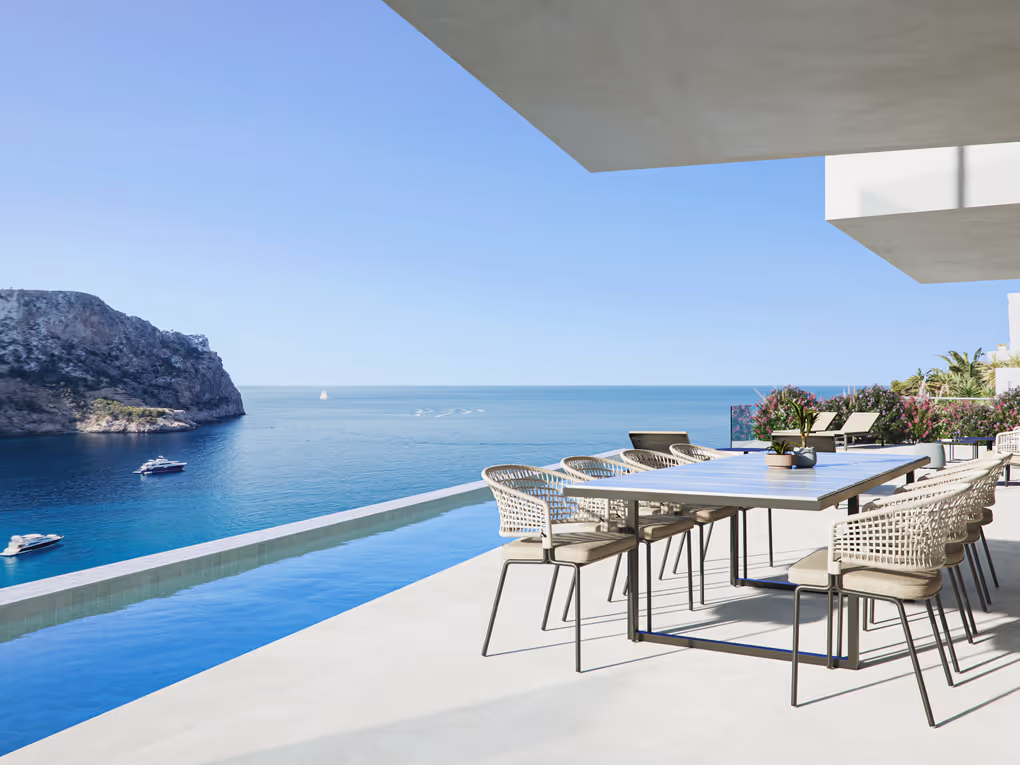 In erhöhter Lage oberhalb des Naturhafens von Port Andratx entstand diese moderne Villa mit spektakulärem Hafen- und Meerblick. Klare Linien, großzügige, lichtdurchflutete Räume und fließende Übergänge zwischen Innen- und Außenbereich prägen die Architektur. Hochwertige Materialien, ein Infinity-Pool sowie ein umfassendes Domotiksystem sorgen für hohen Wohnkomfort.