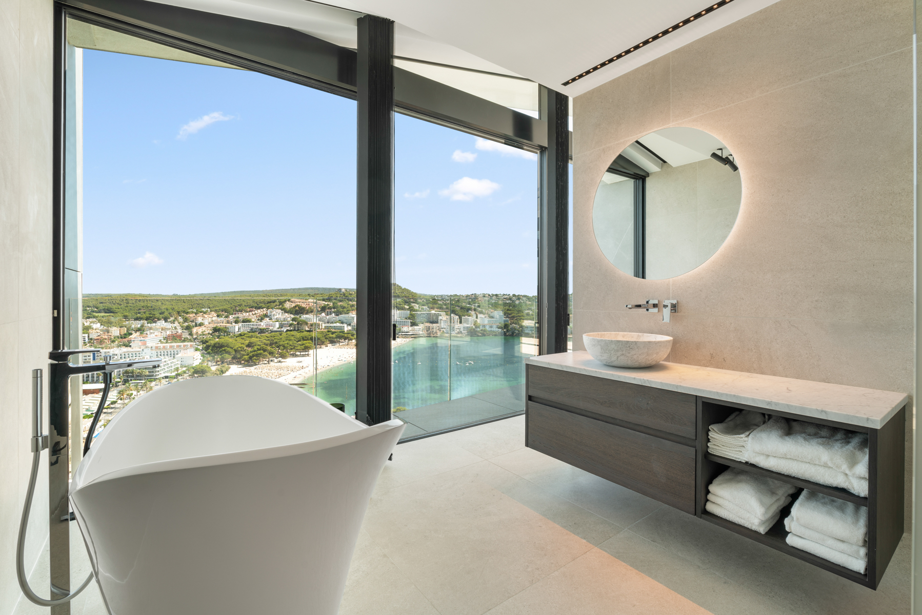 Von allen Wohn- und Schlafbereichen genießen Sie freien Meerblick, während die exponierte Lage selbst im Sommer für eine natürliche Frischluftzirkulation sorgt. Perfekt für elegante Sundowner mit Blick bis Ibiza.